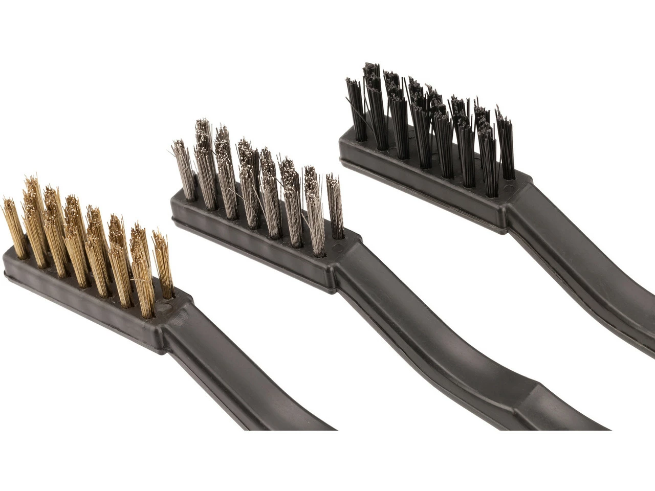 Technische Daten:Material Griff:KunststoffMaterial Borsten:Messing, Stahl, KunststoffLänge:120 mmLieferumfang:Bürstenset 3min19sec 3-teilig, bestehend aus: