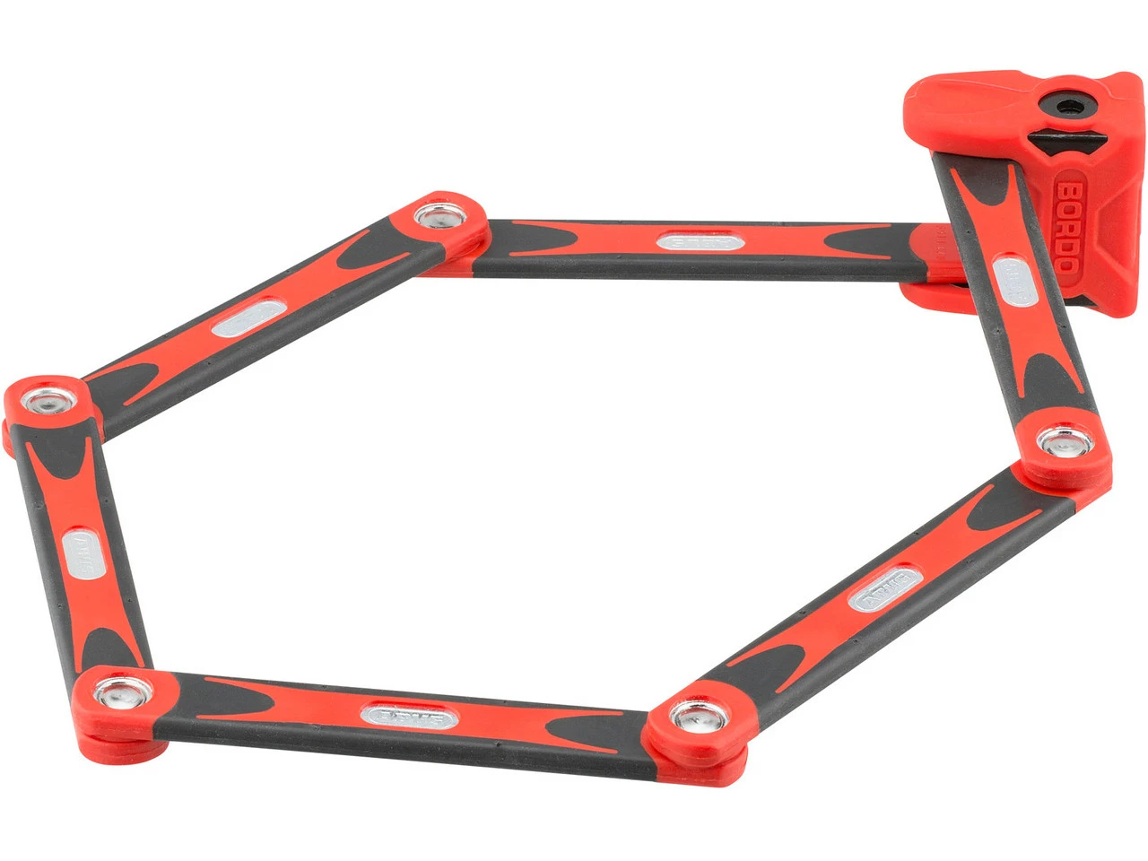 Das ABUS Bordo 6000 ist ein vielfach bewährtes Faltschloss, welches sich insbesondere durch sein platzsparendes Transportformat bei höchstem Sicherheitslevel auszeichnet. Durch 5 mm starke Stäbe aus gehärtetem Spezialstahl, die durch Spezialnieten ihre Beweglichkeit erhalten, stellt das Bordo 6000 von ABUS das perfekte Schloss für hochwertige Fahrräder dar, die in Gegenden mit mittlerem Diebstahlrisiko abgestellt werden.