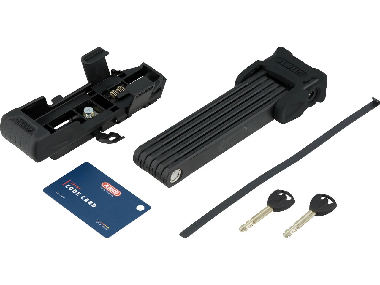 Lieferumfang:1 x Faltschloss ABUS Bordo 6000K1 x Halterung ABUS SH1 x Spanngurt2 x Schlüssel1 x ABUS Plus Code Card