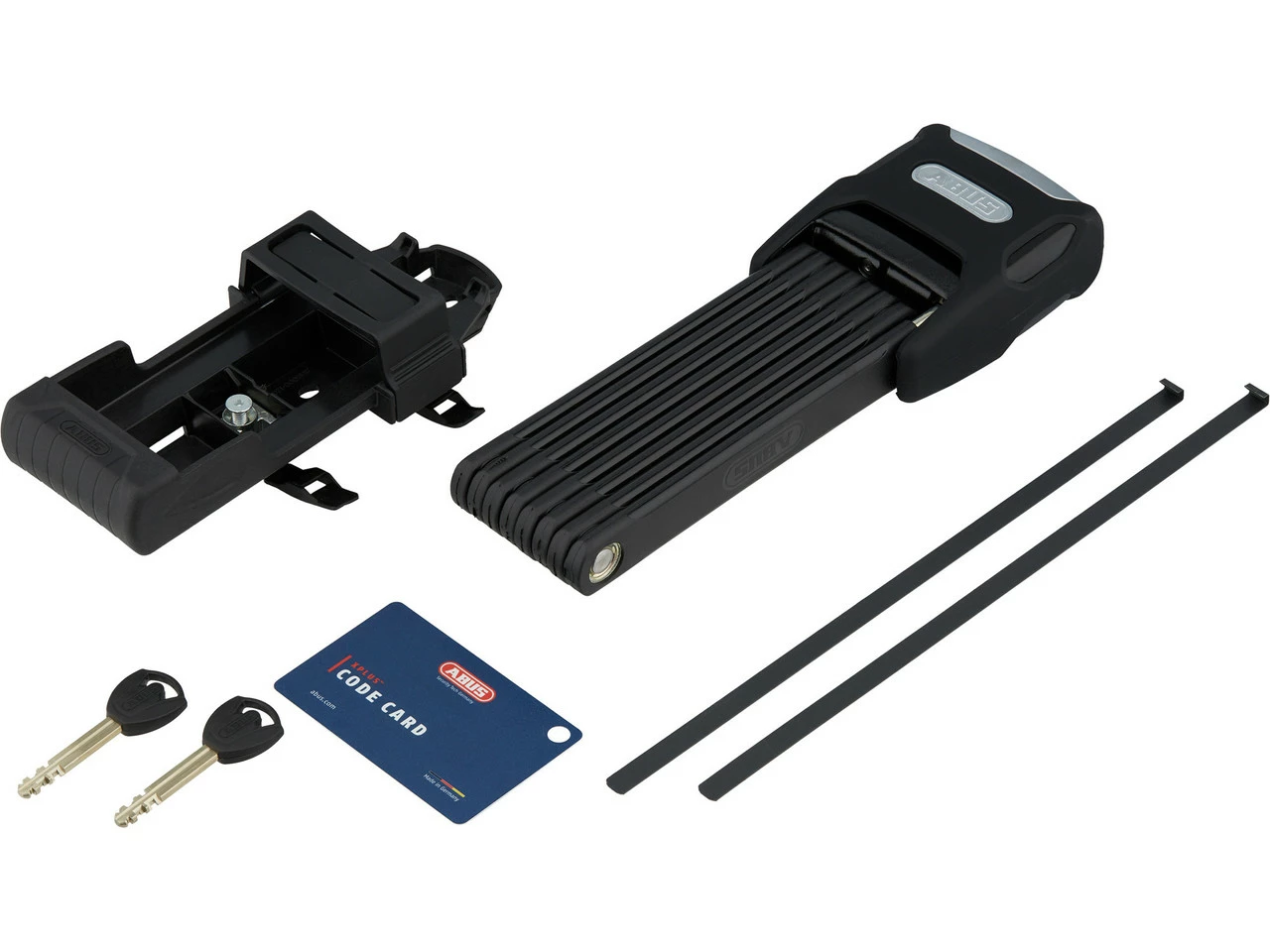 Lieferumfang:1 x Faltschloss ABUS Bordo Big Alarm 6000KA1 x Halter ABUS SH2 x Spanngurt2 x Schlüssel1 x ABUS Plus Code Card1 x Batterie CR2 (integriert)