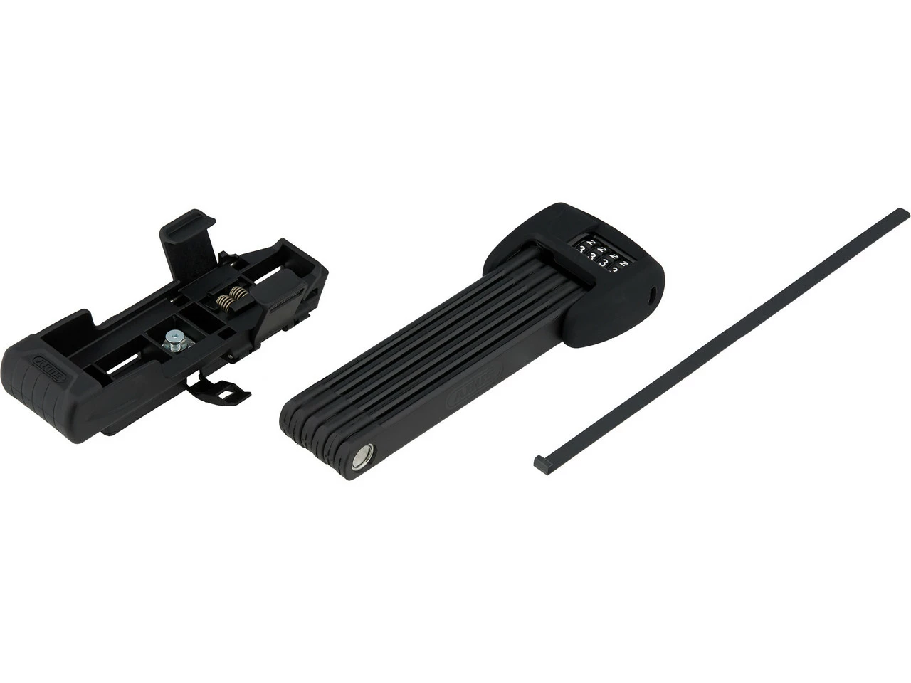 Lieferumfang:1 x Faltschloss ABUS Bordo Combo 6000C1 x Halter ABUS SH1 x Spanngurt1 x Batterie CR2 (integriert)