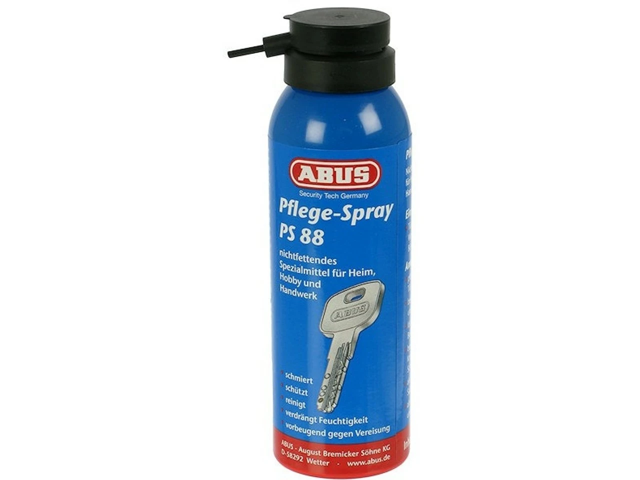 Das PS 88 von ABUS ist ein universell einsetzbares Pflegespray, welches nicht nur im Fahrradbereich vielseitige Anwendung findet. Ob vereiste Schließzylinder, rostende Schrauben oder quietschende Teile – das PS 88 ist die nichtfettende Lösung für fast alles.