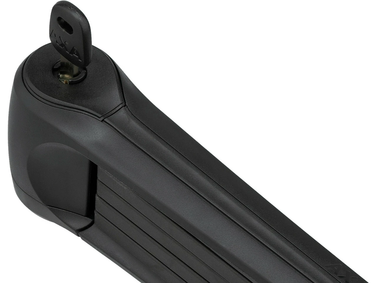 Das Fold 100 Faltschloss ist die neueste Ergänzung zur faltbaren Schlossrange von Axa. Es bietet ein modernes und kompaktes Design bei einer Länge von 100 cm. Es besteht aus 6 faltbaren Schenkeln aus gehärtetem Stahl, welche mit einem gummierten Schutzmantel überzogen sind, damit Dein Rahmen bei der Verwendung des Schlosses nicht beschädigt wird. Das Axa Fold 100 wird mit 2 symmetrischen Schlüsseln geliefert. Wenn ein Schlüssel verloren geht, kann ein Ersatzschlüssel schnell und einfach über Axas internationalen Schlüsselservice bestellt werden. Um lange Freude am Axa Fold 100 zu haben, ist der Zylinder doppelt gegen eindringenden Schmutz und Staub geschützt.