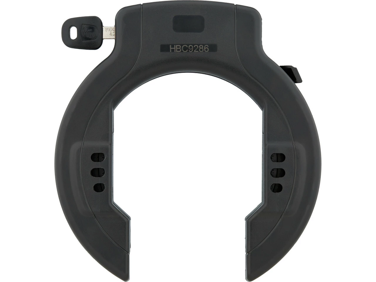 Spezifikationen:Bauweise:RahmenschlossEinsatzbereich:CityInnendurchmesser (min. / max.):91,7 mm / 120,7 mmVerschlussart:SchlüsselSicherheitsstufe:12 (von 15)Technische Daten:Bügelstärke:9 mmMaterial Bügel:StahlFeatures:Rahmenschloss zur Montage am Fahrradrahmen92 mm breite Öffnung: passt auch auf extra breite Schutzbleche und ReifenSicherheitsstufe gemäß der niederländischen ART 2-Sterne-Normmit Anti-Bohr-Platte im Zylindermit Kindersicherung: kann nicht während der Fahrt geschlossen werdenkombinierbar mit Einsteckkette oder -KabelHerstellernummer:588400560X05SC