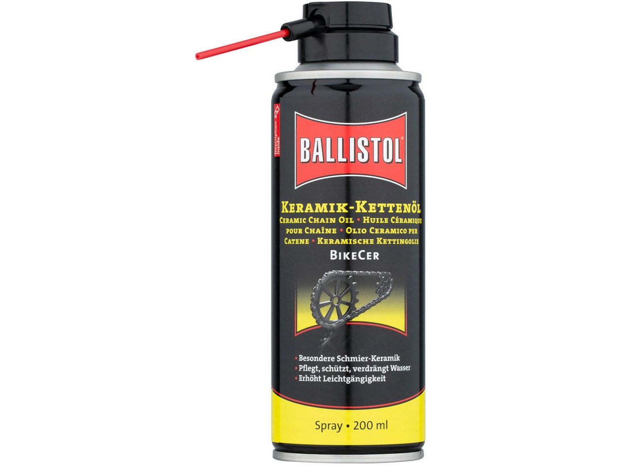 Nennmenge:200 mlVerpackungsform:SprühdoseHerstellernummer:28059Lieferumfang:1 x Kettenöl Ballistol BikeCer