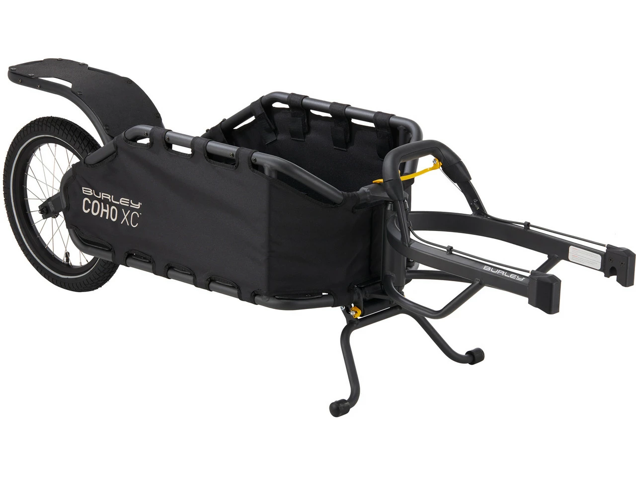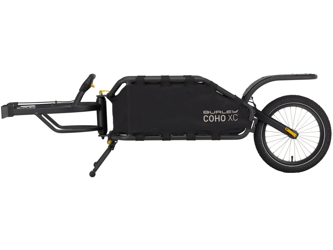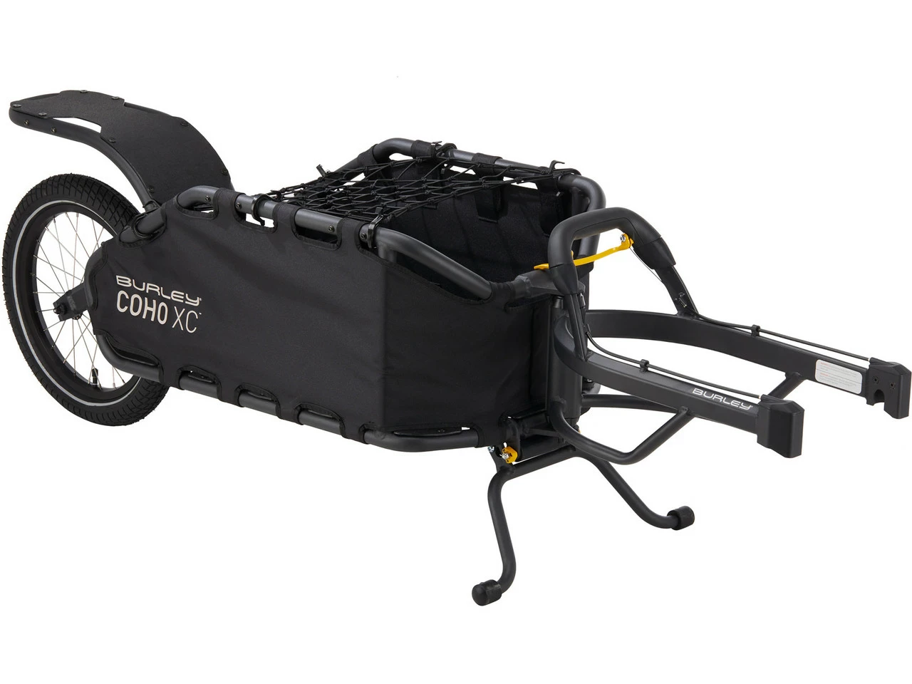 Spezifikationen:Ausführung:LastenanhängerLaufradgröße:16″Technische Daten:Bremse:NeinFederung:JaDeichselbefestigung Zugrad:HinterradachseMaße (H x B x T):53,97 cm x 43,18 cm x 168,91 cmMaße Ladefläche (L x B):60,9 cm x 38,1 cmVolumen Stauraum:70 LiterRahmenmaterial:AluminiumFreigaben:Zuladung max.:31,8 kgFeatures:wendig und schlank dank einachsiger KonstruktionSpiralfederung sorgt für ruhiges Fahrverhaltenweitenverstellbares Joch passt auf unterschiedliche AchsbreitenSchutzblech und Gestelloberkante auf gleicher Höhe, damit auch überlange Gegenstände auf dem Anhänger transportiert werden könnenBefestigungsmöglichkeiten für Flaschenhalter, Werkzeug etc.Entriegelungsgriff zum Abkoppeln mit einer Handohne Werkzeug auf- und abbaubarabnehmbares Spannnetz zum Schutz der Ladunghöhenverstellbarer Kickstandabnehmbare SeitenwändeKomplettierung:Für die Nutzung des Coho XC Transportanhängers wird eine Burley Ballz Steckachse oder eine Burley Ballz Schnellspannachsebenötigt. Diese sind nicht im Lieferumfang enthalten.