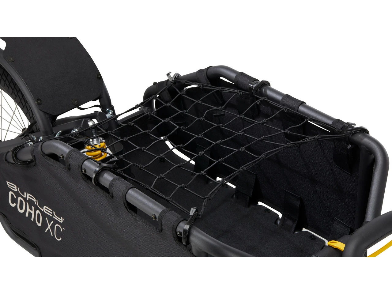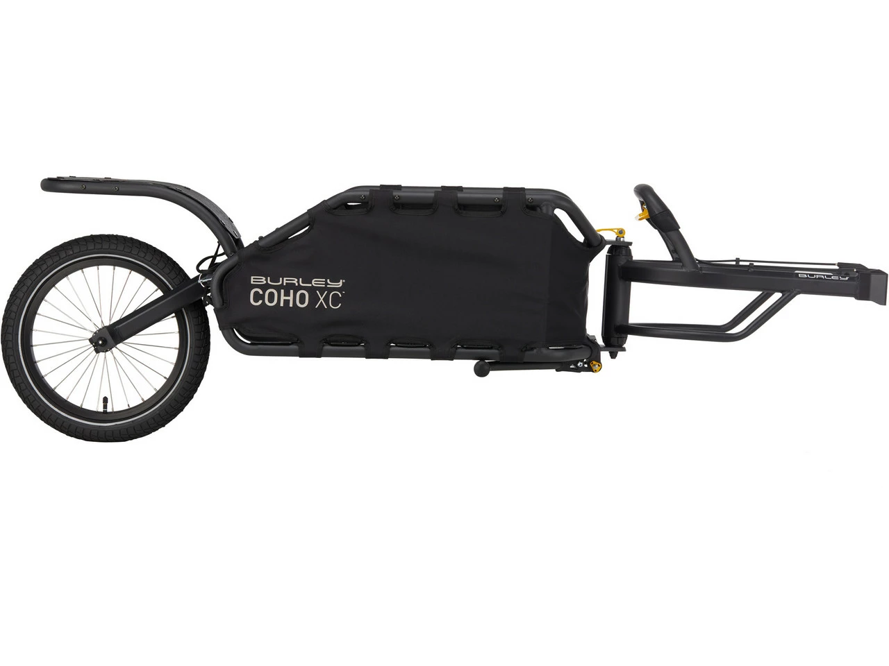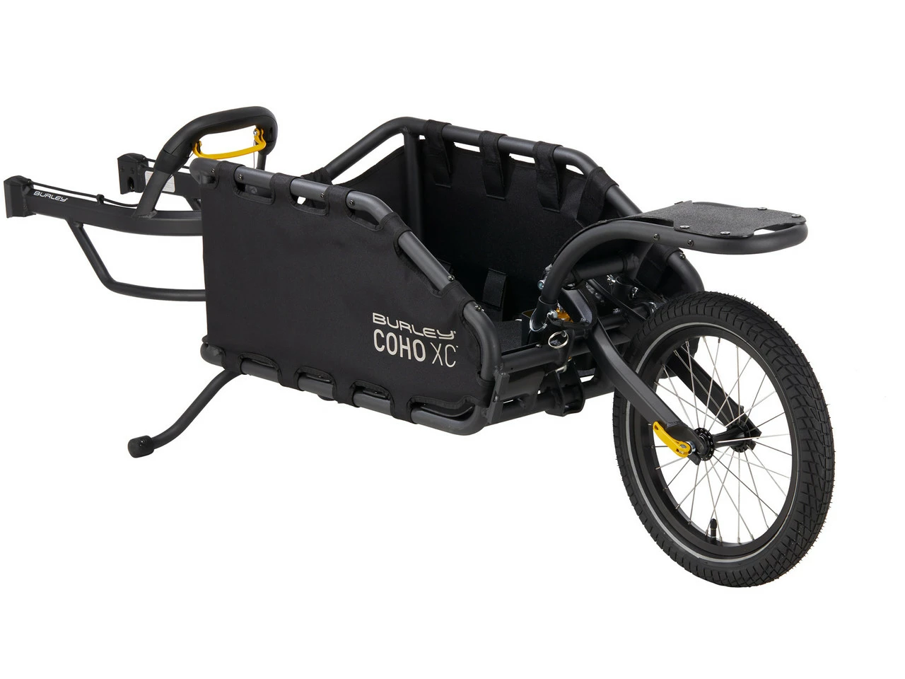 Spezifikationen:Ausführung:LastenanhängerLaufradgröße:16″Technische Daten:Bremse:NeinFederung:JaDeichselbefestigung Zugrad:HinterradachseMaße (H x B x T):53,97 cm x 43,18 cm x 168,91 cmMaße Ladefläche (L x B):60,9 cm x 38,1 cmVolumen Stauraum:70 LiterRahmenmaterial:AluminiumFreigaben:Zuladung max.:31,8 kgFeatures:wendig und schlank dank einachsiger KonstruktionSpiralfederung sorgt für ruhiges Fahrverhaltenweitenverstellbares Joch passt auf unterschiedliche AchsbreitenSchutzblech und Gestelloberkante auf gleicher Höhe, damit auch überlange Gegenstände auf dem Anhänger transportiert werden könnenBefestigungsmöglichkeiten für Flaschenhalter, Werkzeug etc.Entriegelungsgriff zum Abkoppeln mit einer Handohne Werkzeug auf- und abbaubarabnehmbares Spannnetz zum Schutz der Ladunghöhenverstellbarer Kickstandabnehmbare SeitenwändeKomplettierung:Für die Nutzung des Coho XC Transportanhängers wird eine Burley Ballz Steckachse oder eine Burley Ballz Schnellspannachsebenötigt. Diese sind nicht im Lieferumfang enthalten.