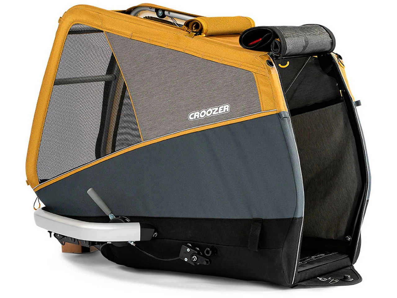 Hundebett, innerhalb und außerhalb des Anhängers nutzbarUniversalkupplung Click & Crooz für ein weiteres ZugfahrradFaltgarage, wasserdicht, gegen Staub, Schmutz, RegenRegenverdeck