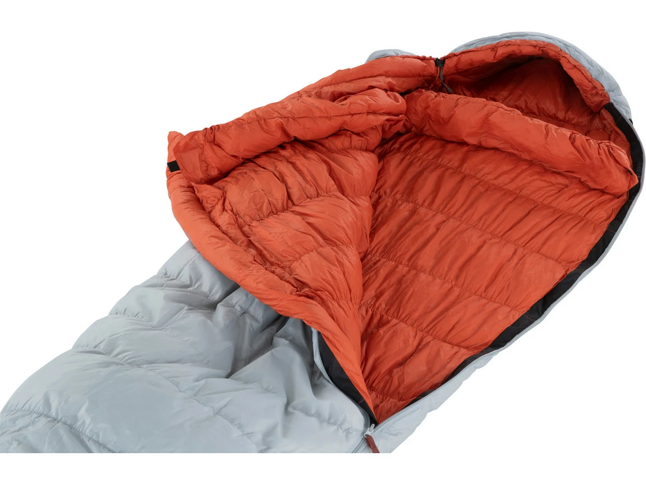 Komforttemperatur:Die untere Temperatur, bei der eine durchschnittliche Frau (25 Jahre, 60 kg, 1,60 m) eine Nacht komfortabel durchschlafen kann. Solltest Du unerfahren sein, ist diese Angabe die beste Orientierung für Dich.Limittemperatur:Die untere Temperatur, bei der ein durchschnittlicher Mann (25 Jahre, 70 kg, 1,73 m) eine Nacht komfortabel durchschlafen kann. Eventuell musst Du Dich den Umständen entsprechend kleiden und verhalten.Extremtemperatur:Die untere Temperatur, die eine durchschnittliche Frau bei starker Belastung durch Kälte 6 Stunden aushalten kann. Schlaf ist ausgeschlossen. Es ist mit einem starken Kälteempfinden zu rechnen, außerdem besteht das Risiko von Gesundheitsschäden durch Unterkühlung.Technische Daten:Gesamtlänge:205 cmKörpergröße max.:185 cmSchulterbreite:84 cmBreite im Fußbereich:56 cmPackmaß:14 cm x 33 cmMaterialzusammensetzung:Hauptmaterial:100 % Polyamid (20D, Ripstop)Innenmaterial:100 % Polyamid (20D, Ripstop)Füllung:Material:DaunenVerhältnis Daune/Feder:90/10Bauschkraft:650+ cuinFüllgewicht:400 g