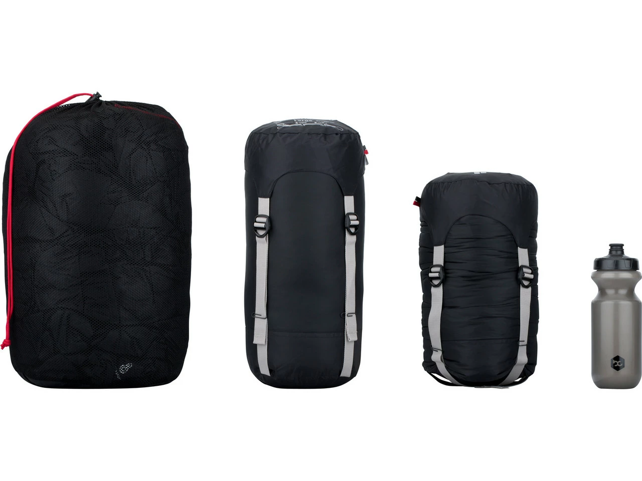 Der Exosphere 0° Schlafsack von deuter eignet sich für Bikepacker und Radreisende, die von Frühjahr bis in den Herbst hinein unterwegs sind. Die dehnbare Mumienkonstruktion bietet Dir viel Bewegungsfreiheit, wobei sie sich gleichzeitig schnell aufwärmt und die Wärme gut konserviert. Zuträglich sind dabei die sich selbst anpassende Kapuze sowie der Wärmekragen. Im Bereich der Füße wurde sogar an eine doppelte Schicht Isoliermaterial gedacht, damit Du auch dort stets gut gewärmt bist. Das Thermo-ProLoft®-Isolationsfleece ist leicht, sehr robust und verfügt über eine hohe Wärmeleistung. Außerdem ist es sehr pflegeleicht und gut komprimierbar. Über den praktischen Zwei-Wege-Reißverschluss regelst Du bei höheren Temperaturen die Belüftung. Besonders funktional ist der Packsack mit Kompressionsriemen, mit dem der Schlafsack auch gut in kleineres Gepäck passt.