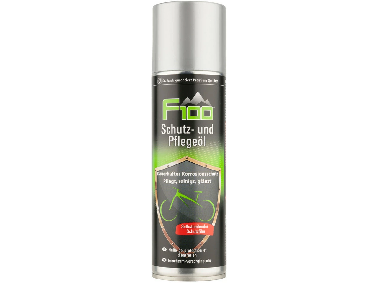 Spezifikationen F100 Schutz- und Pflegeöl:Bezeichnung:F100 Schutz- und PflegeölEinsatzbereich:Reinigung und Pflege von Rahmen und Fahrradteilen, Schutz vor KorrosionAnwendungsgebiet:sämtliche Oberflächen aus Metall, Kunststoff, CarbonFeatures F100 Schutz- und Pflegeöl:bietet zuverlässigen Schutz und stoppt vorhandene Korrosion (bei regelmäßiger Anwendung)hohes Kriechvermögentransparenter Schutzfilm gegen schädliche Umwelteinflüsseschonende Pflege und Reinigungbestens zur Winterstilllegung geeignetmit Lack, Gummi und Kunststoff verträglichkann problemlos mit F100 Fahrradreiniger entfernt werdenFeatures F100 Mikrofasertuch:Größe: 40 x 40 cmhohe Saugkraft zum “ Abledern“perfekt zur Verarbeitung des F100 Matt-Pflege Sprayszum Auftragen des F100 Schutz- und Pflegeöls (nicht zum Nachwischen geeignet)sehr weich und flauschig für überaus schonende Behandlung der Oberflächebeidseitiger Hoch-Flor –sehr lange einsetzbar, absolut sicher gegen falsche Anwendung und doppelte Nutzungsflächenahtlos durch Ultra-Sonic-Cut für ein kratzfreies Auspolierenhält ca. 300 Waschzyklenfür sehr empfindliche Lacke geeignetsehr angenehme und weiche HaptikAnwendung F100 Schutz- und Pflegeöl:Dose vor Gebrauch schüttelnnur auf sauberen, trockenen Oberflächen anwendengleichmäßig und sparsam aufsprühenmit weichem Lappen nachwischen oder mit getränktem Lappen auftragenfür Winterstilllegung satt aufsprühen (ohne Nachwischen)