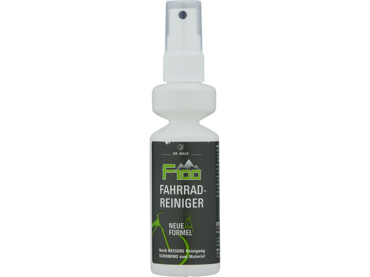 Spezifikationen:Bezeichnung:F100 FahrradreinigerAnwendungsbereich:Reinigung des FahrradsFeatures:für das ganze Fahrrad inklusive Kette geeignetentfernt stärkste Verschmutzungen dank Aktiv-Fettlöseformelreinigt selbstständig und rückstandsfreischützt empfindliche Oberflächen (z. B. Alu, Chrom, Carbon, eloxierte Teile)auch für Mattlack geeignetsäurefrei und materialverträglichfür E-Bikes geeignetAnwendung:komplettes Fahrrad einsprühen5-10 Minuten (bei starken Verschmutzungen 30 Minuten) einwirken lassenanschließend mit Wasserstrahl (kein Hochdruck!) gründlich abspülen, bis keine Schaumbildung mehr sichtbar istbei Bedarf Reinigung mit Schwamm oder Bürste unterstützen