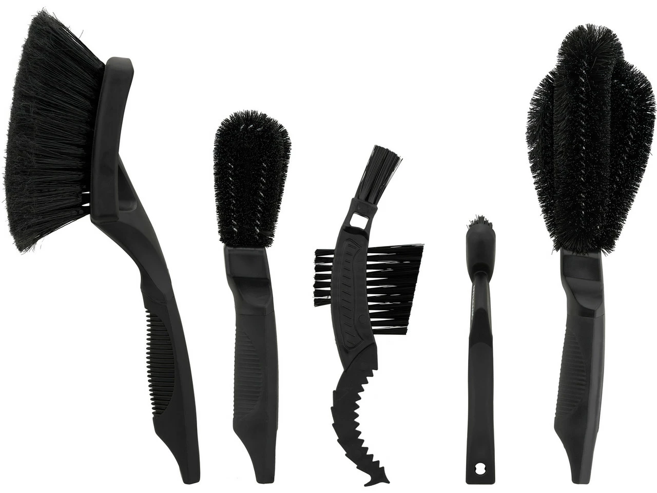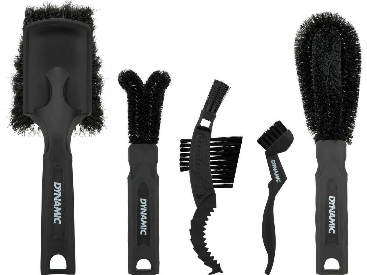 Das Band of Brushes Bürstenset von Dynamic besteht aus folgenden fünf Bürsten: Soft Washing Bürste, Wheel and Components Bürste, Two Prong Bürste, Drivetrain Detailing Bürste und Claw Bürste. Diese befinden sich in einer praktischen Box zur Aufbewahrung. Das Set eignet sich zur vollständigen Reinigung Deines Bikes, vom Rahmen bis hin zu den Antriebskomponenten.