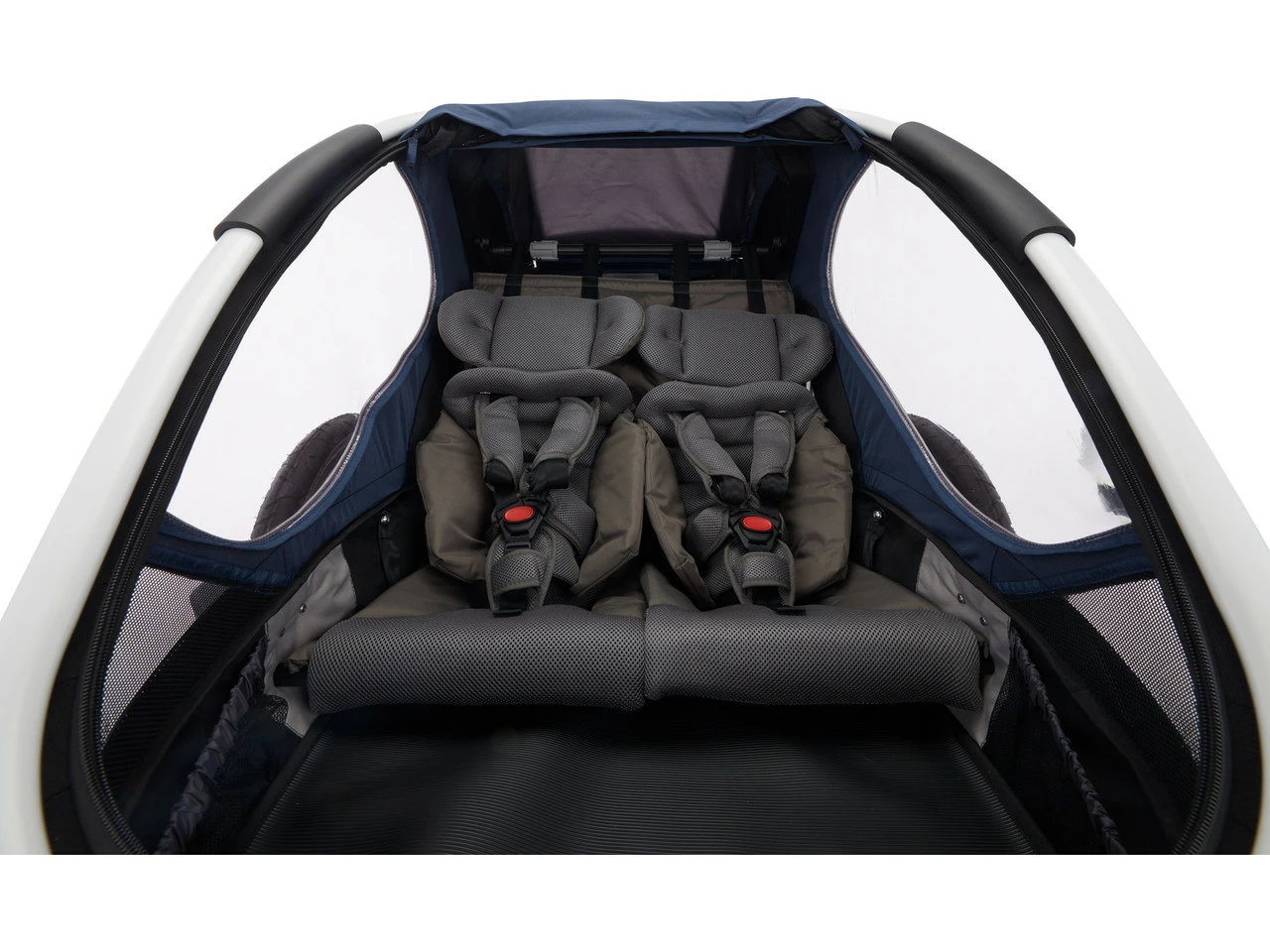 Spezifikationen:Ausführung:KinderanhängerLaufradgröße:20″Sitzplätze:2Technische Daten:Bremse:fußbetätigte FeststellbremseFederung:einstellbare FederungDeichselbefestigung Zugrad:HinterradachseMaße (H x B x T):95 x 86 x 190 cmMaße zusammengeklappt (H x B x T):30 x 81 x 108 cmRahmenmaterial:AluminiumFreigaben:Zuladung max.:40 kgStützlast max.:8 kgFeatures:Platz für zwei Kinder bis zu je 117 cm Körpergröße oder 22 kg Körpergewichtkomfortable Sitze mit 5-Punkte-Gurtsystemin 3 Positionen einstellbare RückenlehneInsektengitter, Sonnen- und Regenverdeck integriert und verstaubar bei Nichtgebraucheinstellbare Federung für Komfort auch abseits der Straßezusätzlicher Stauraum hinter den Sitzen für Ausrüstung, Einkäufe usw.wasserdichtes Außenmaterialverstellbarer Buggy-BügelSafe Connection Point zeigt an, wenn Deichsel oder Buggyrad sicher am Anhänger montiert sindSitze lassen sich komplett ausbauen, um den Anhänger als Lastenanhänger zu nutzenReflektoren und reflektierendes Material sorgen für Sichtbarkeitansteckbares Rücklicht (batteriebetrieben)Herstellernummer:HAM400068