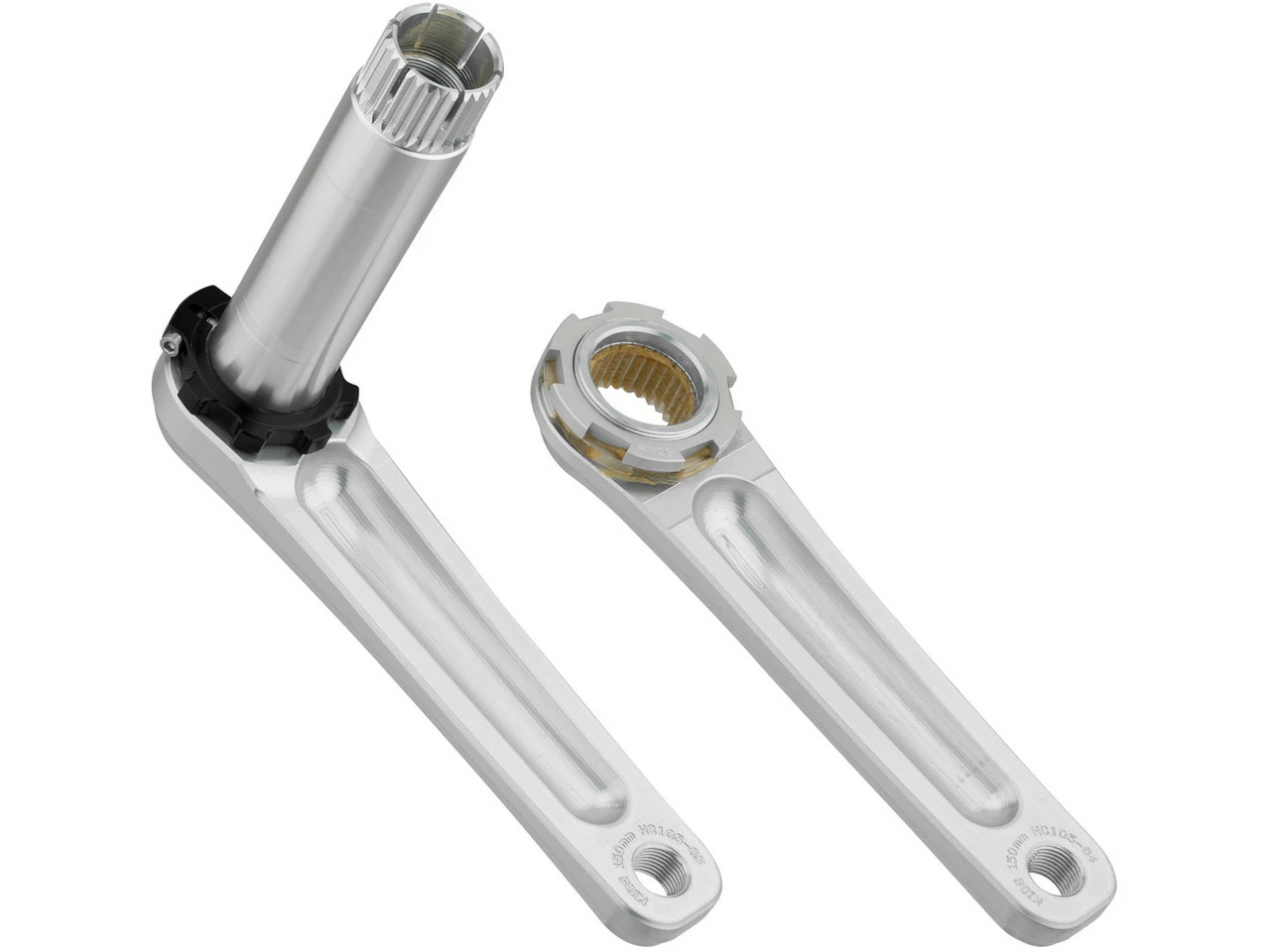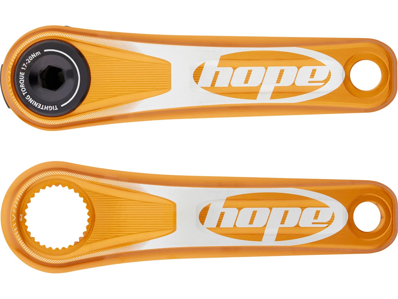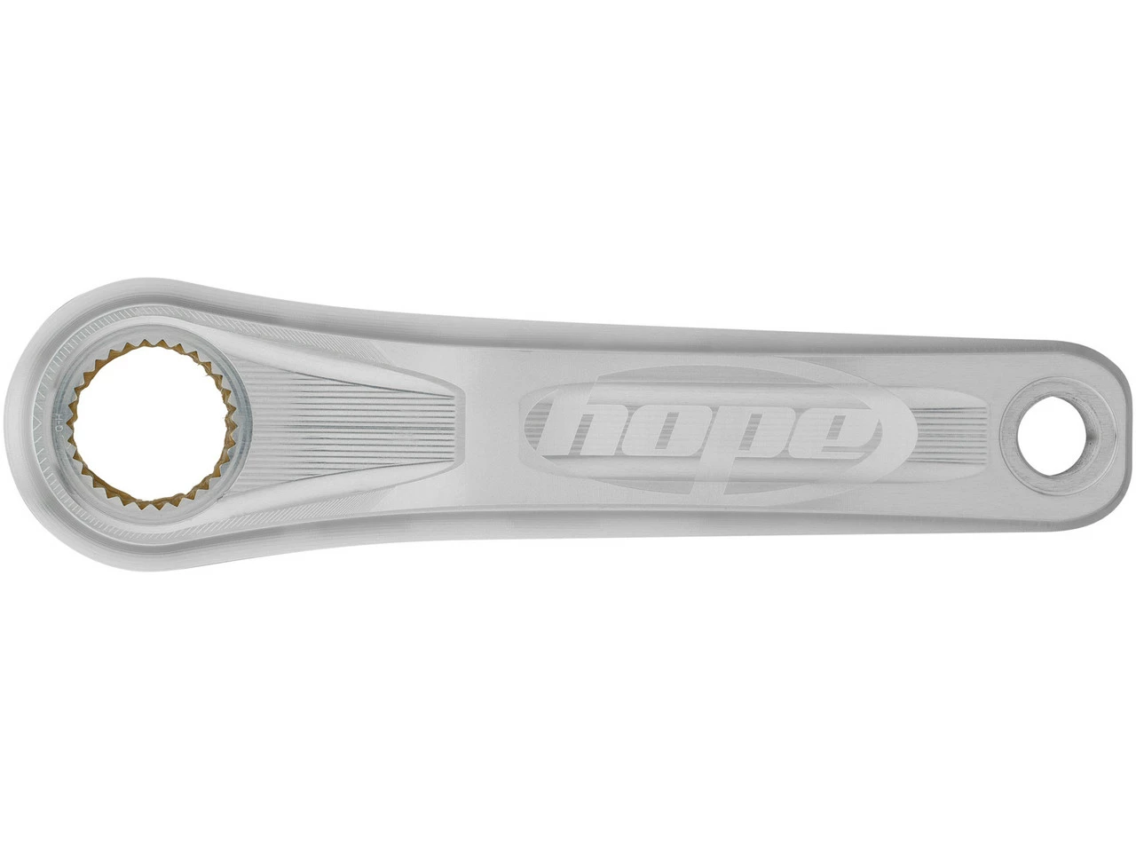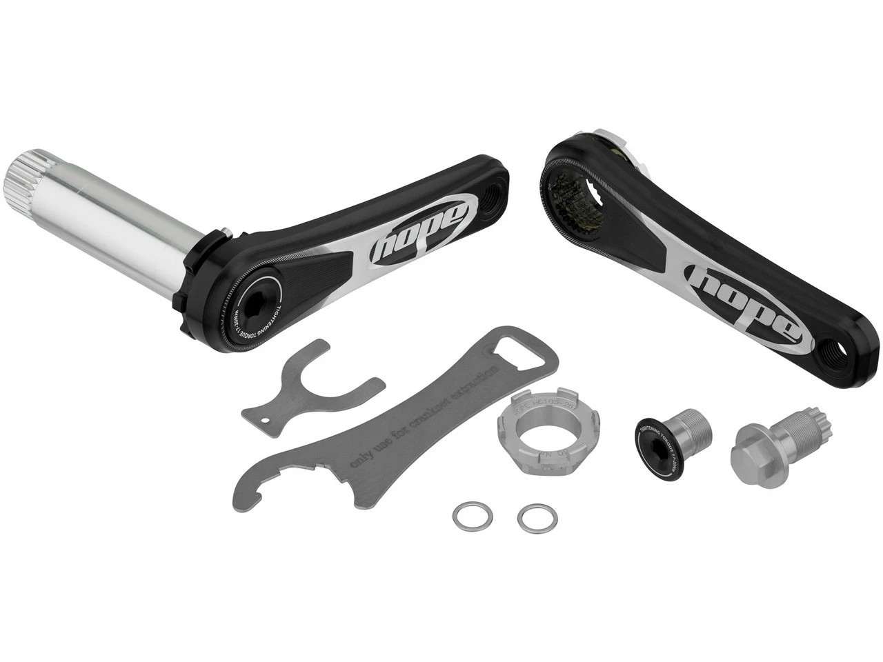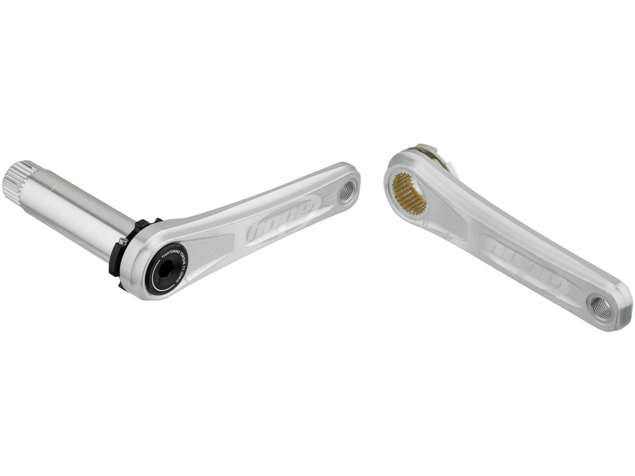 Die Kids No Spider Kurbel hat Hope speziell für Kinderräder mit 68 mm Tretlagergehäuse konzipiert und gebaut. Die Kurbelarme bestehen aus 7000er Aluminium und sind wahlweise 135 oder 150 mm lang. Eine 30 mm Achse wird mitgeliefert, aber kein Spider. Es lassen sich auch Direct-Mount-Kettenblätter verwenden.