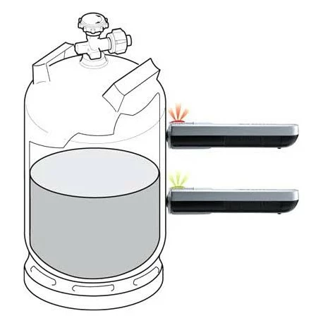 Hierzu wird der Füllstandsanzeiger LevelCheck einfach waagerecht an die Gasflasche angesetzt, die Messung erfolgt temperaturunabhängig durch Ultraschall.