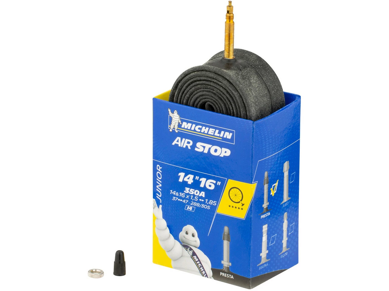 Bezeichnungen/Synonyme: Sclaverand-Ventil (SV), Französisches Ventil, Presta-VentilAußendurchmesser: 6,5 mmLieferumfang:1 x Schlauch Michelin I4 Airstop Junior 14 – 16″