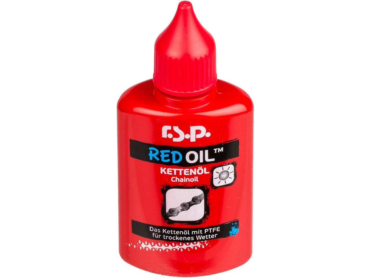 Die einzigartige Schmierwirkung von r.s.p. Red Oil sorgt für eine reibungslose Funktion von Kette und Schaltung. Schmutzabweisende Additive halten die Kette sauber und leichtgängig.
