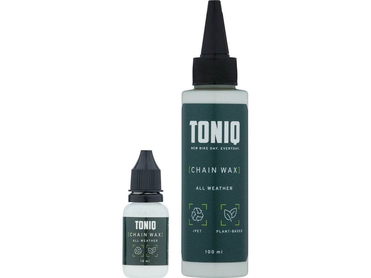 Das Bundle umfasst zwei Tropfflaschen TONIQ Chain Wax Kettenwachs: die 100-ml-Flasche dient Dir als Vorrat, das 15-ml-Fläschchen ist praktisch für unterwegs und lässt sich immer wieder auffüllen. TONIQ Chain Wax ist umweltfreundlich, reduziert den Verschleiß Deiner Kettenschaltung und wirkt einer Geräuschentwicklung entgegen. Durch seine Konsistenz bleiben die Oberflächen trocken, sodass weniger Schmutz an der Kette haften kann.