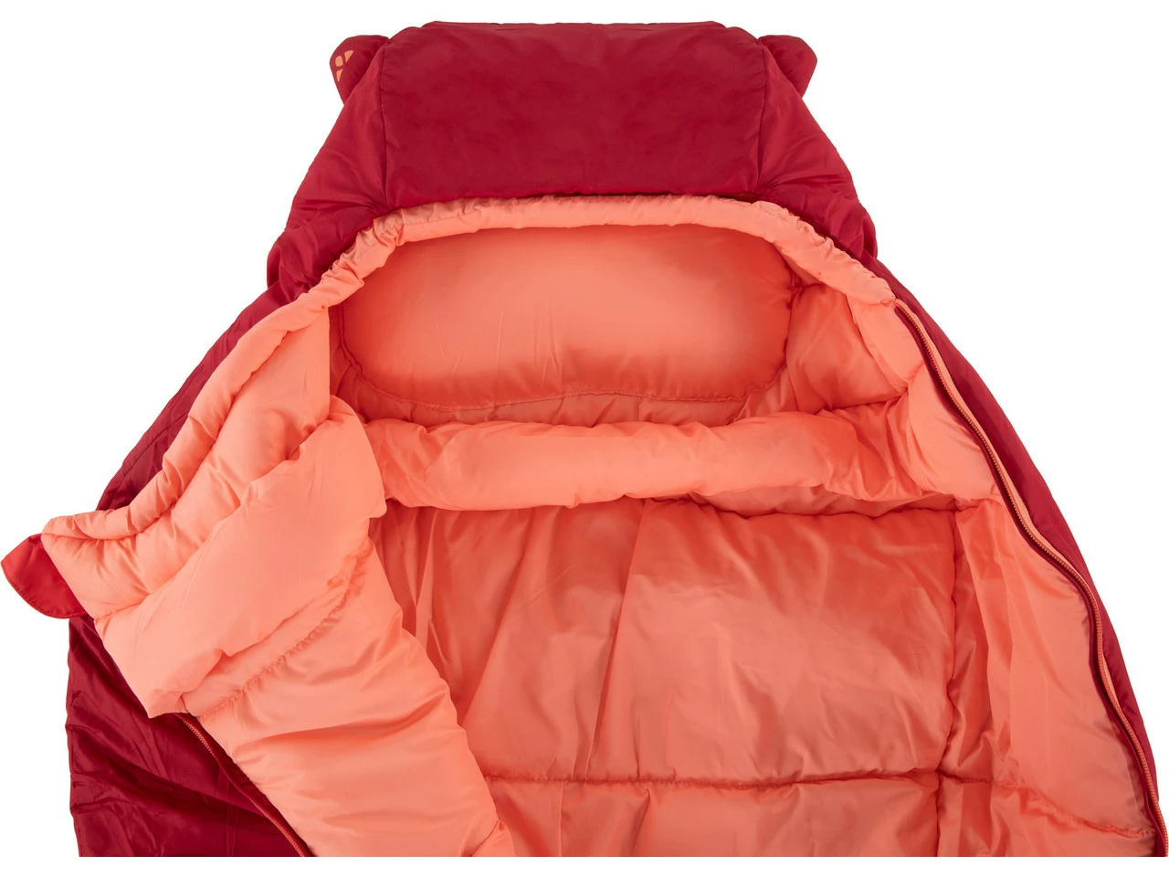 Spezifikationen:Einsatzbereich:Touring & Trekking, KidsKonstruktion:MumienschlafsackReißverschluss:linksTechnische Daten:Gesamtlänge:160 cmKörpergröße max.:135 cmSchulterbreite:65 cmBreite im Fußbereich:40 cmPackmaß:33 cm x 22 cmMaterialzusammensetzung:Hauptmaterial:100 % Polyester, 50D 300TInnenmaterial:100 % Polyester, 50D 300TFüllung:Material:100 % Polyester (Sensofiber Eco)Füllgewicht:500 gFeatures:Kinderschlafsack zur Verwendung von Temperaturen oberhalb von ca. 4 °Cfür Kinder von ca. 3 bis 8 Jahrengeeignet für eine Körpergröße von 105 bis 135 cmlängenverstellbar mittels Reißverschluss am FußsackMumienschlafsack für hohe WärmeeffizienzFüllung aus Sensofiber für ausgezeichnete Isolationkonturierte Kapuze, passt sich an den Kopf anWärmekragen hält Wärme im Schlafsack3D-Fußbox für warme FüßeInnentasche für Wertsachenhautfreundliches, weiches Materialmit recyceltem PolyesterTechnologien:Angepasste Kapuze