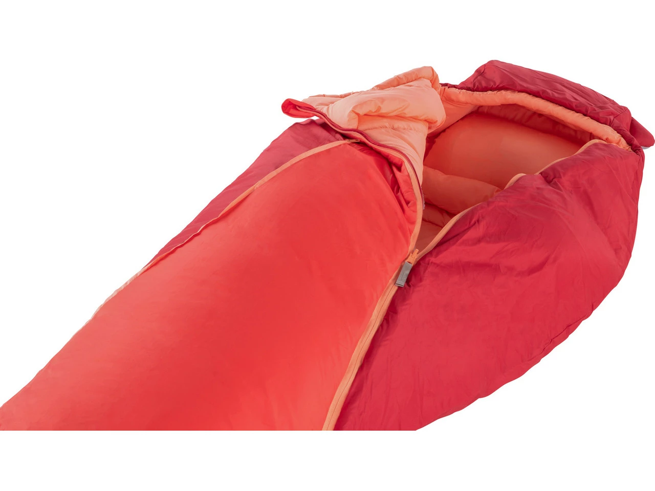 Der Schlafsack ist im Bereich der Füße genau an deren Platzbedarf angepasst. Das bedeutet, das Volumen ist hier geringer. Dadurch muss weniger Luft erwärmt werden, was zu einer höheren Wärmeleistung führt.