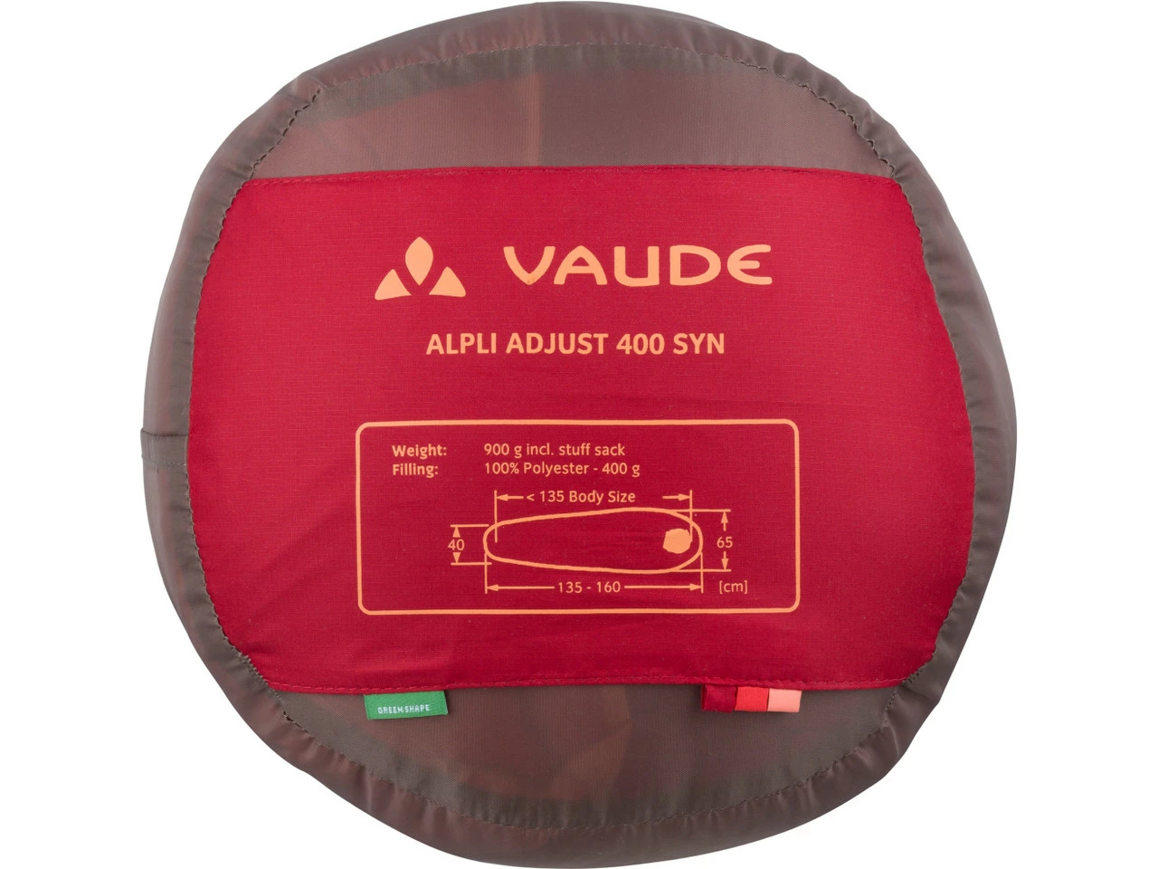 Lieferumfang:1 x Kinderschlafsack VAUDE Alpli Adjust 400 SYN1 x Packsack VAUDE