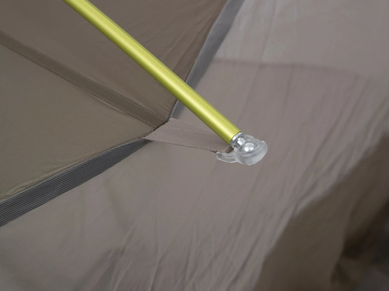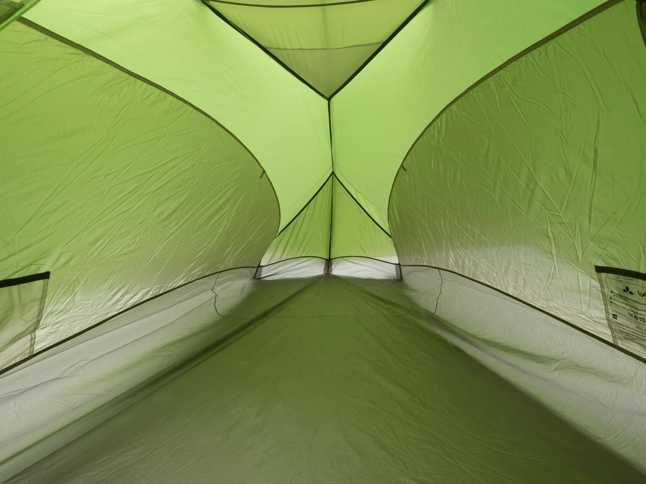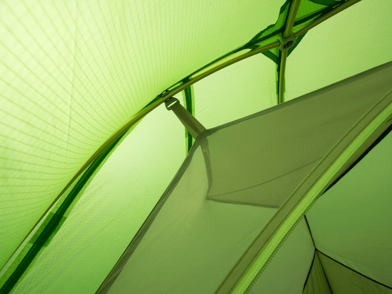 Das Innenzelt besteht aus drei verschiedenen Materialien, die für ein angenehmes Innenklima sorgen. Die Ventilation wird durch ein abdeckbares Moskitonetz geregelt. Ein feines Mesh lässt Wasserdampf entweichen und verhindert das Tropfen von Kondenswasser. Ripstop-Material erzielt eine hohe Textilspannung, sodass der Platz optimal ausgenutzt wird.